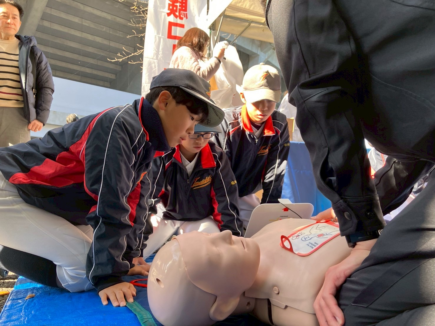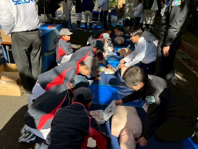 心肺蘇生法を学ぶブースでは